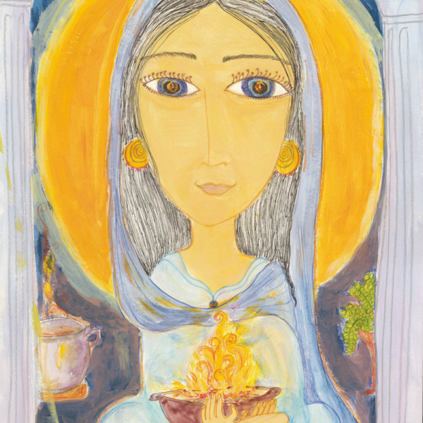 Esta ilustración de Hestia, diosa griega del hogar y del templo sagrado, la realicé en plena noche de san Juan 2013, con toda la playa llena de hogueras en Almería, por eso tiene tanto fuego en la mirada. Y es que a veces hago coincidir el…