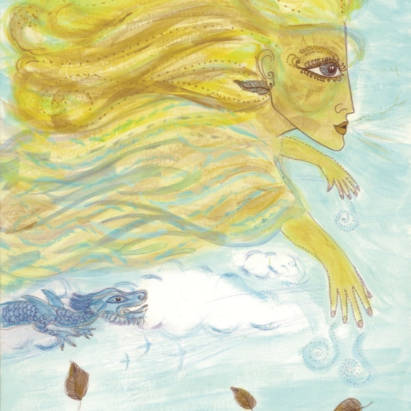 Dentro del proyecto Mujeres de la Naturaleza, dibujé a esta Mujer Tierra como una madre alimentando a su bebé y puse en su boca estas palabras: «Soy la sólida Dama de la Tierra, fértil y oscura. Sostener la vida es mi gran poder femenino.…