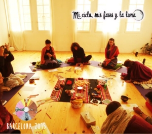 Cuando llego, me recibe la organizadora de este taller en Barcelona, Marta Coromina, una doula de gran sensibilidad y una mujer encantadora que dinamiza a grupos de mujeres sobre estos temas. En el interior está preparado un círculo con telas y objetos, ilustraciones, piedras, esculturas y frutas. Julia explica a través de sus ilustraciones los cuatro arquetipos del ciclo menstrual, y nos hace danzar, meditar y plasmar con colores y papel nuestro sentir.